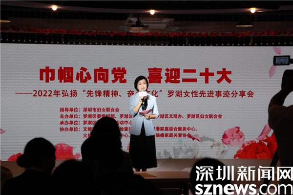 此次分享會(huì)是由深圳市婦女聯(lián)合會(huì)指導(dǎo),羅湖區(qū)委組織部、羅湖區(qū)委統(tǒng)戰(zhàn)部、羅湖區(qū)文明辦、羅湖區(qū)婦女聯(lián)合會(huì)聯(lián)合主辦,是羅湖區(qū)婦聯(lián)開展的“巾幗心向黨、喜迎二十大”群眾性主題宣傳教育系列活動(dòng)之一。活動(dòng)旨在發(fā)揮先進(jìn)女性模范的示范引領(lǐng)作用,發(fā)揮婦聯(lián)組織宣傳表彰的三八紅旗手、巾幗建功標(biāo)兵等先進(jìn)典型的激勵(lì)帶動(dòng)作用,推動(dòng)形成崇尚榜樣、學(xué)習(xí)模范、爭(zhēng)當(dāng)先進(jìn)的良好社會(huì)風(fēng)尚。