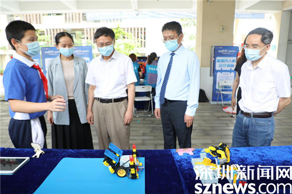 此外,活動現場還設置科創(chuàng)作品展示區(qū)和人工智能體驗區(qū)。張學記和現場嘉賓參觀了學生創(chuàng)客作品展,對智能分揀機、變形機器人、智能教室等作品予以了肯定。同學們在老師帶領下,有序參加了意念爆米花、意念無人機、bit模型火箭車比賽、智能機器人體驗、AI編程機器人等科技體驗項目,不時地發(fā)出歡呼和驚嘆的聲音,感受到人工智能的魅力。