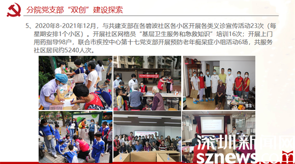 區(qū)中醫(yī)院康復分院黨支部以黨建引領“雙創(chuàng)”工作取得良好實效,與黃貝社區(qū)黨委的共建和交叉任職推動醫(yī)療資源和社區(qū)服務的資源共享,把“社區(qū)關愛服務”落到實處。通過黨組織聯(lián)動,增強了居民與醫(yī)護之間的溝通聯(lián)系,有力推動65歲老人體檢和疫苗接種,大大提升居民認可度、滿意度。康復分院黨支部與社區(qū)黨支部和黨員義工合作,為轄區(qū)內(nèi)70歲以上生活不便孤寡老人提供全方位的關愛服務,開展上門訪視服務535人次;深入各小區(qū)開展各類義診宣傳、健康知識推廣活動等36場,惠及居民5000余人。