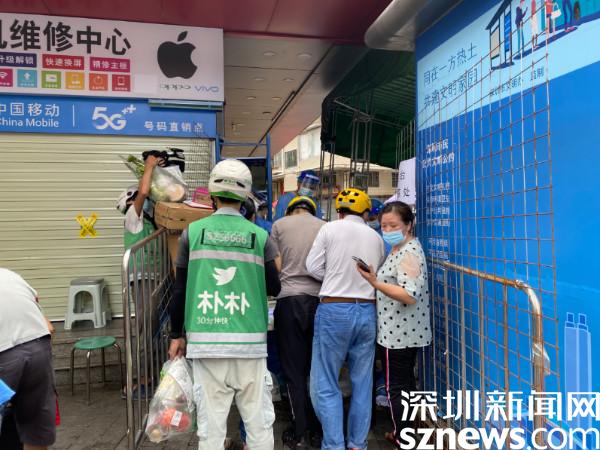 在向西村外圍,工作人員認真值守,并引導每一個進入小區(qū)的市民進行掃碼、測溫、戴口罩。“發(fā)現(xiàn)疑似病例之后,我們就迅速行動,進行整個街道的全員核酸采樣,對疑似病例的小區(qū)進行就地核酸、就地管控。我們立刻成立了配送、醫(yī)療、轉運小組等保障居民服務的工作小組,每個小組都有不同的部門在指導負責。像我們整個配送小組,投入了將近一百三十人,全面保障了我們整個封控、管控區(qū)居民的日常配送工作。這個貨架上面,目前來說已經是非常快速地清理完了,居民的外賣這一類,我們優(yōu)先配送。”羅湖區(qū)南湖街道物資配送組副組長鄺國斌說。