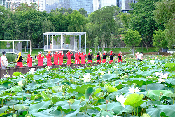 夏至時節(jié),深圳市洪湖公園里百畝荷花嬌艷欲滴、競相開放,呈現(xiàn)“接天蓮葉無窮碧,映日荷花別樣紅”的景象。