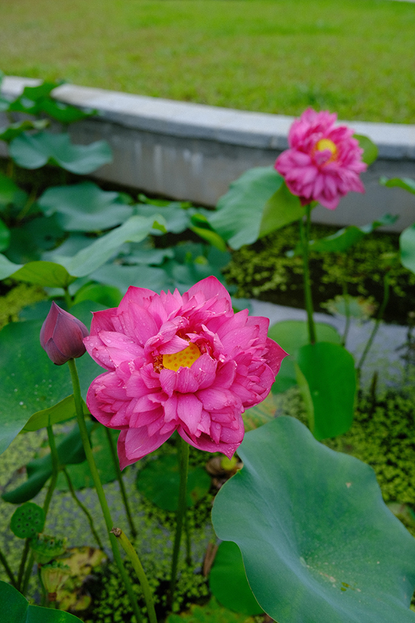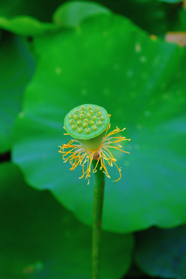 夏風輕輕拂過“害羞”的小蓮蓬,翠綠的荷葉層層疊疊,錯落有致。