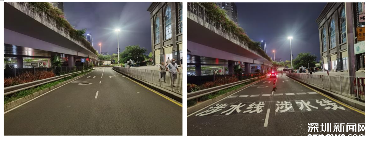 深南東路東行人民橋下涉水線施工前后對比