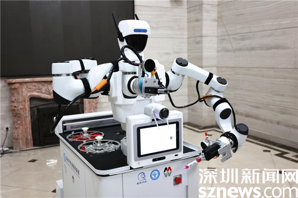 據(jù)悉,該款命名為“鵬程青耕”二代的高性能移動(dòng)協(xié)作機(jī)器人產(chǎn)品由深圳市羅湖醫(yī)院集團(tuán)牽頭,深圳墨影科技有限公司、深圳市人工智能與機(jī)器人研究院(AIRS)合作研發(fā)。該研發(fā)團(tuán)隊(duì)由羅湖醫(yī)院集團(tuán)孫喜琢博士任總負(fù)責(zé)人,覃金洲博士為醫(yī)療示范總執(zhí)行,墨影公司楊一鳴博士負(fù)責(zé)機(jī)器人及核心硬件自動(dòng)化集成,AIRS 張?zhí)硗┦控?fù)責(zé)核心算法。