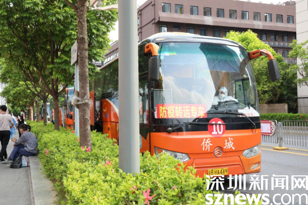 在小區(qū)外,一排防疫轉(zhuǎn)運專車??柯愤?,工作人員有序引導(dǎo)小區(qū)的居民登記上車。