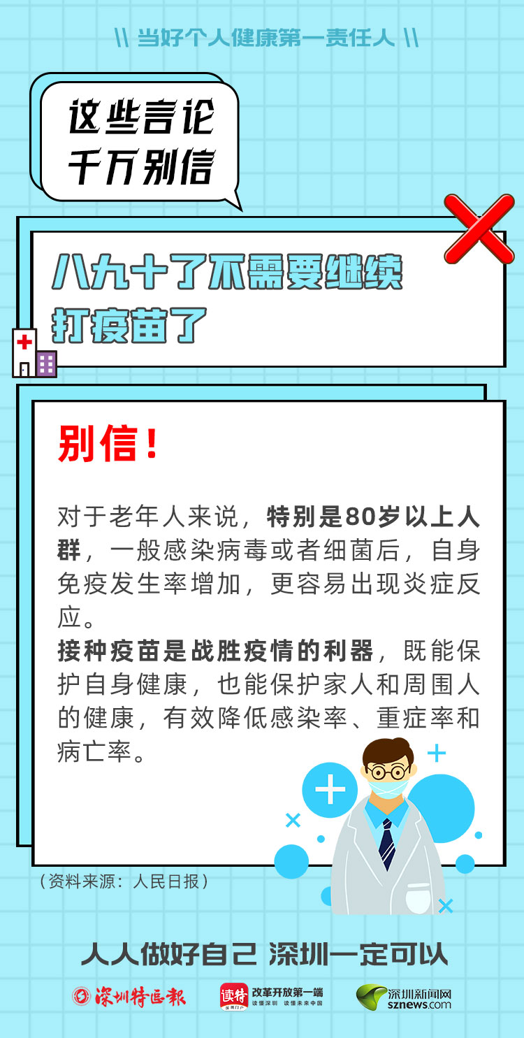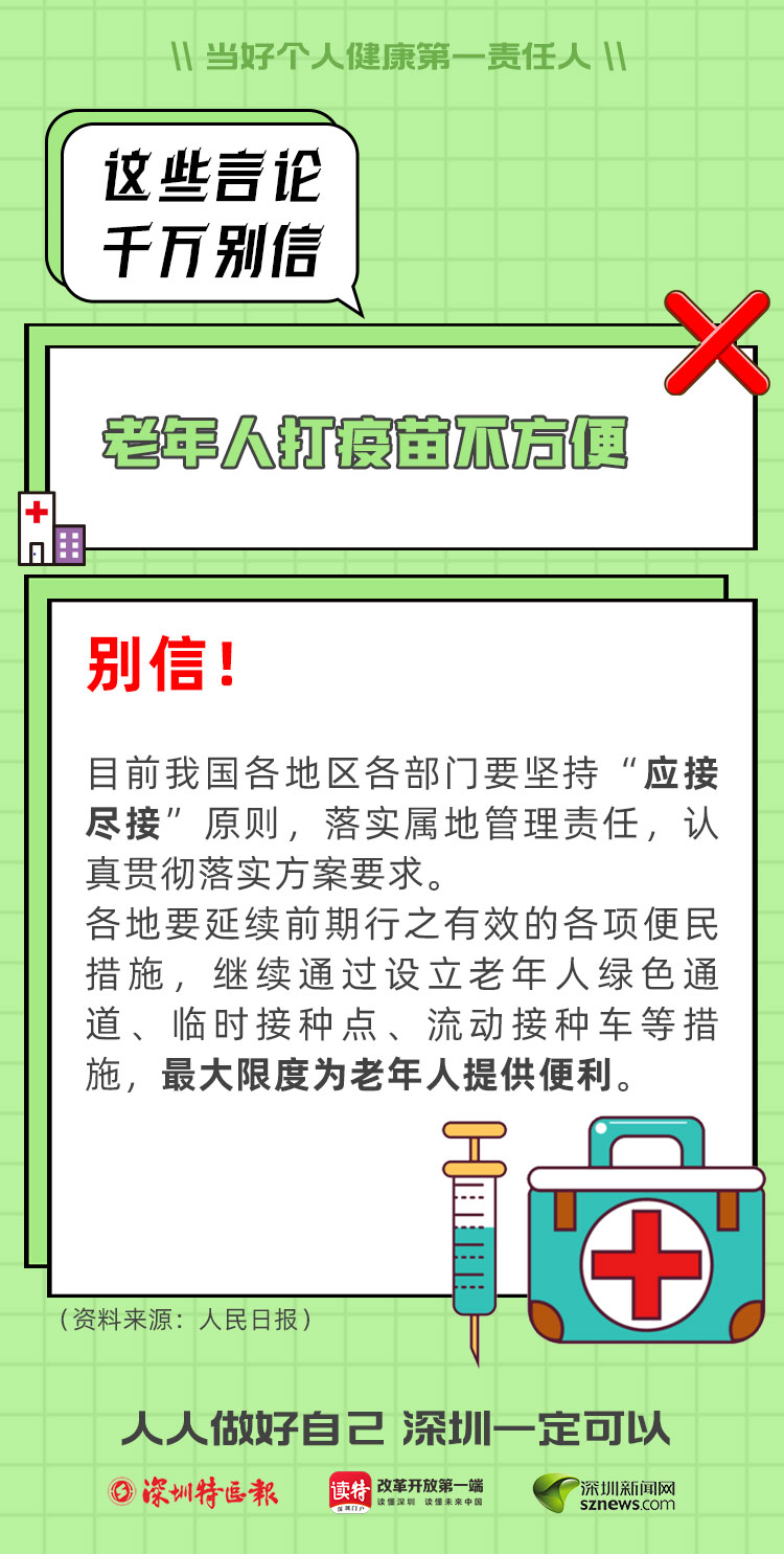 當然,還有很多老人認為自己身體虛弱,猶豫該不該打疫苗。其實,這事兒要讓科學來決定。就近前往疫苗接種點,醫(yī)生一定會本著負責態(tài)度,考察您的身體狀況,給您是否接種疫苗提供最靠譜的參考意見。事實上,這幾年,海量的接種數(shù)據也表明,接種疫苗不良反應率極低,而且大多表現(xiàn)輕微。相信科學,相信專家,準沒錯。