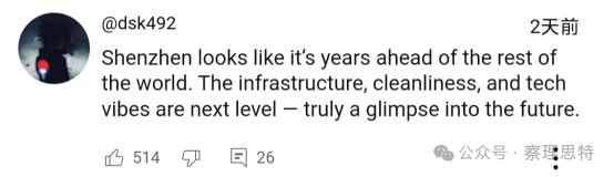 (“深圳看起來(lái)比世界其他地方領(lǐng)先好幾年?;A(chǔ)設(shè)施、清潔度和科技氛圍都是一個(gè)新的水平——真正讓人看到了未來(lái)?!保?/p>