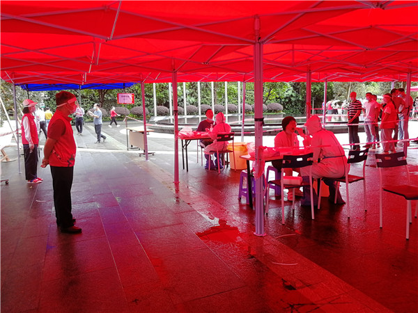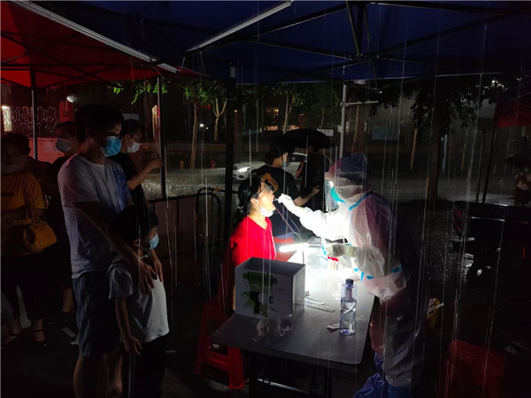 6月22日一早,深圳雷雨交加,深圳市氣象臺(tái)2021年06月22日07時(shí)10分在多個(gè)區(qū)域發(fā)布暴雨紅色預(yù)警,羅湖也包括其中。有那么一群人,嚴(yán)陣以待、逆雨迎風(fēng),堅(jiān)守在抗疫一線,當(dāng)天,記者來(lái)到各核酸檢測(cè)點(diǎn),醫(yī)護(hù)人員和社區(qū)義工們?nèi)匀幻爸L(fēng)雨,堅(jiān)守在核酸采集的崗位上。