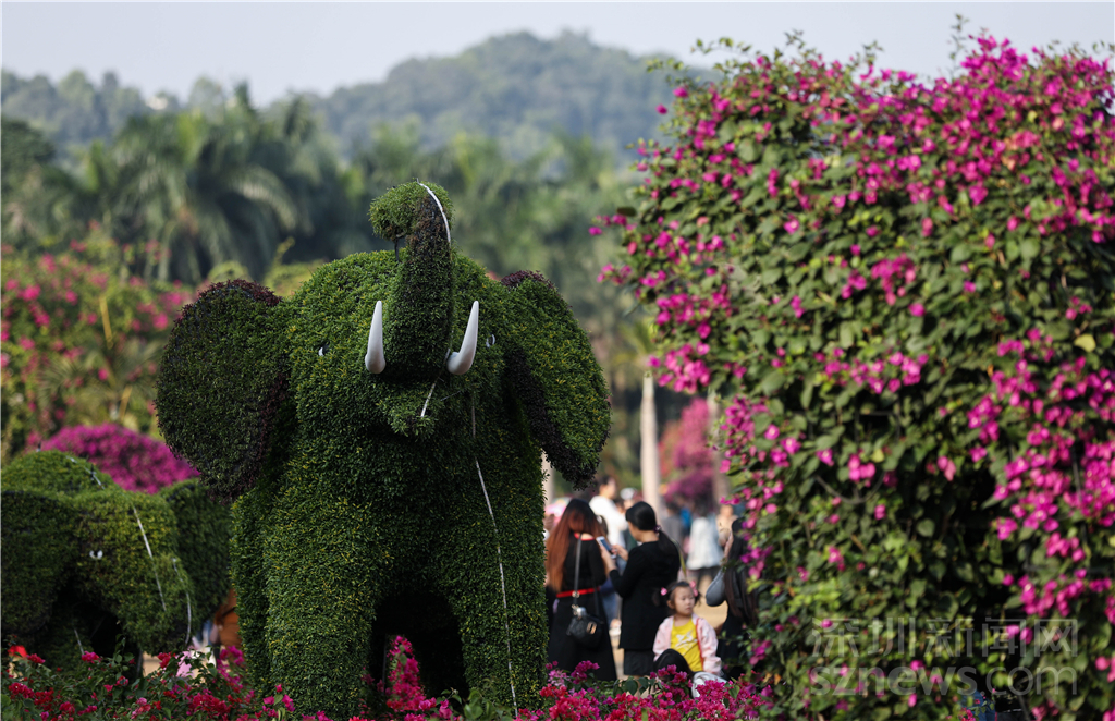 可愛的“大象”似乎在為這場花展“慶?!?/p>