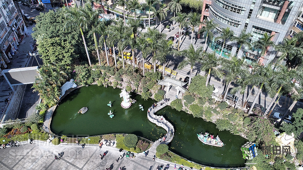 附近居民來(lái)到文化廣場(chǎng)前的池子投喂錦鯉。