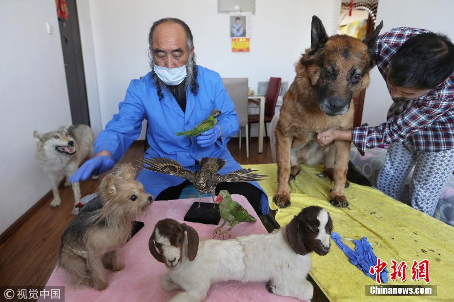 狗年到來,來找他將離世的愛犬和其他寵物做成標本的人絡繹不絕,動物們就這樣老郭手中復生。據(jù)老郭介紹,進入狗年,他接到了幾位主人送來的三只過世狗狗來做標本。從20歲出頭開始制作第一只貓頭鷹標本以來,在老郭手下復生的動物大到汗血賽馬、獅子、野豬,小到蜂鳥,近些年僅制作賽馬標本就有50匹,其它的寵物標本有數(shù)千余件。文字來源:法制晚報 圖片來源:視覺中國