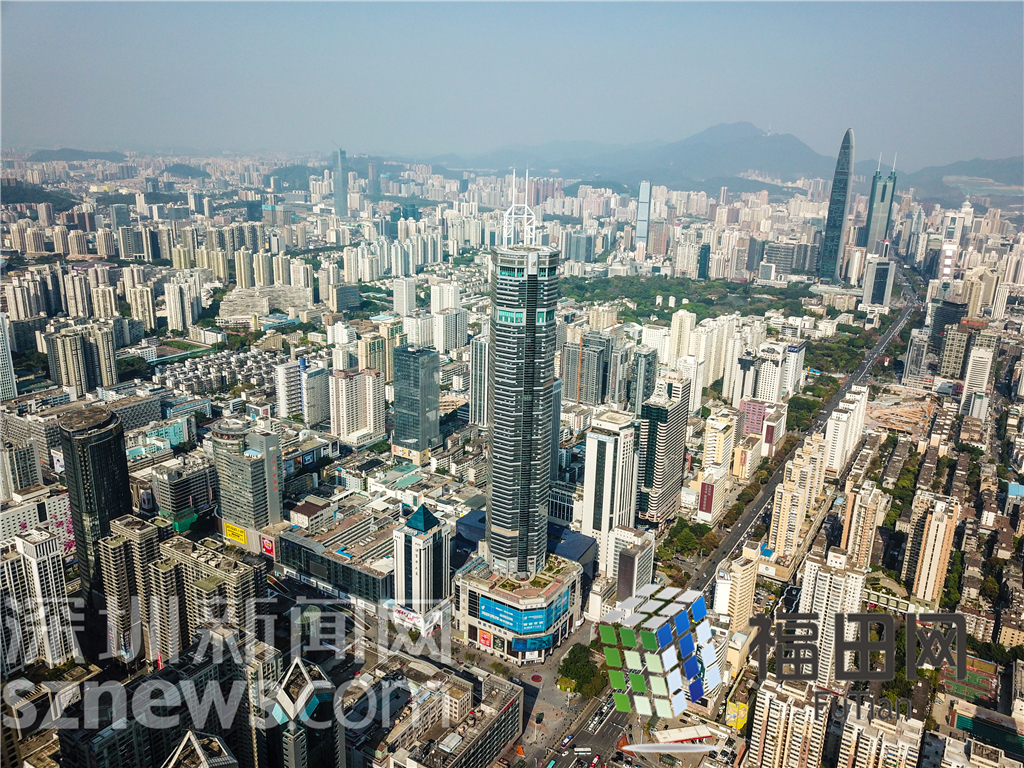 大樓全貌,遠處是京基100和地王大廈。