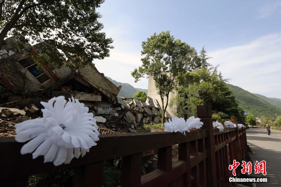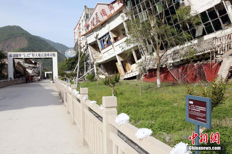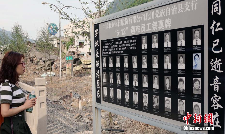 5月初,記者專程前往四川北川,探訪老縣城地震遺址。遺址內(nèi)莊嚴肅穆,不時有民眾參觀悼念。據(jù)管理者介紹,這里每天都有數(shù)百人前往憑吊,節(jié)假日則有數(shù)千人。在這里,保留著地震當時破損的房屋以及修建的遇難者公墓等。在每一個破損的建筑前都設(shè)立有當時建筑的使用單位,有的還豎立著遇難者的名單。當日,巧遇了多位當年在北川職業(yè)中學就讀的師生,他們結(jié)伴同行在北川職業(yè)中學遺址悼念在地震中遇難的師生。中新社記者 任海霞 攝