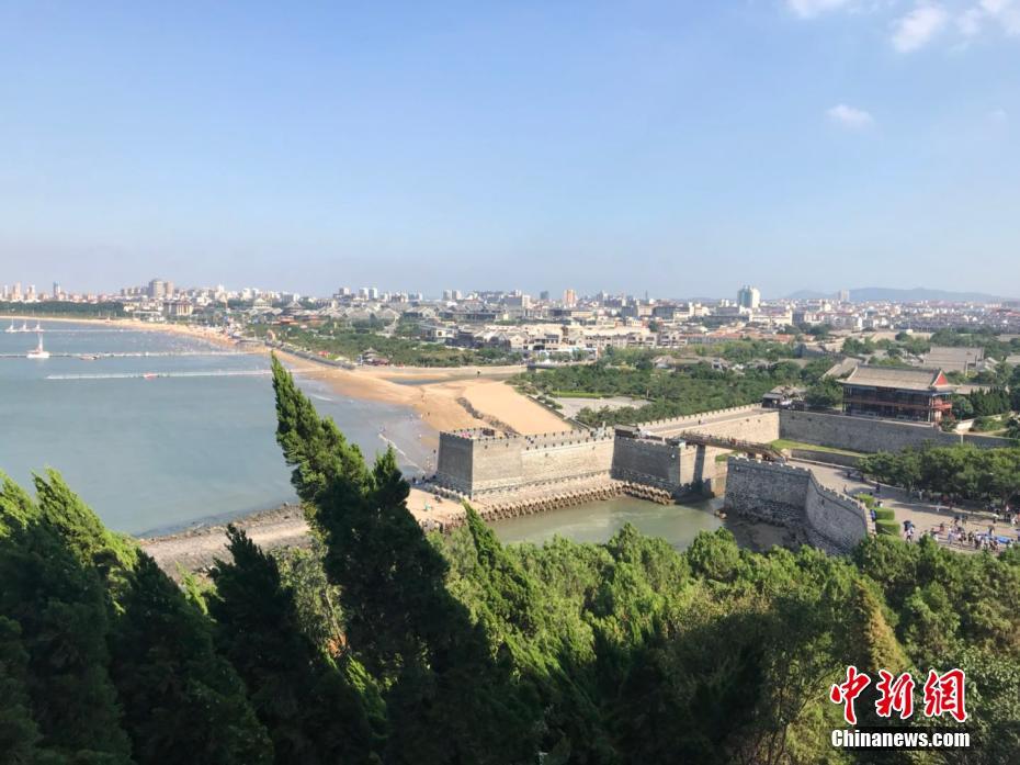 7月16日,記者探訪了山東省蓬萊市蓬萊閣。蓬萊閣是中國古代四大名樓之一,素有“人間仙境”之美譽。傳說曾有神仙出沒于此,秦始皇曾命人在此尋求“長生不老”之藥。蓬萊閣建于丹崖極頂,建筑凌空,海霧氤氳,居身其中,恍如身處仙境。“八仙過?!钡膫髡f亦源于此地。在蓬萊閣主閣二層,登臨遠眺,蓬萊盡收眼底。中新網(wǎng)記者梁美辰 攝