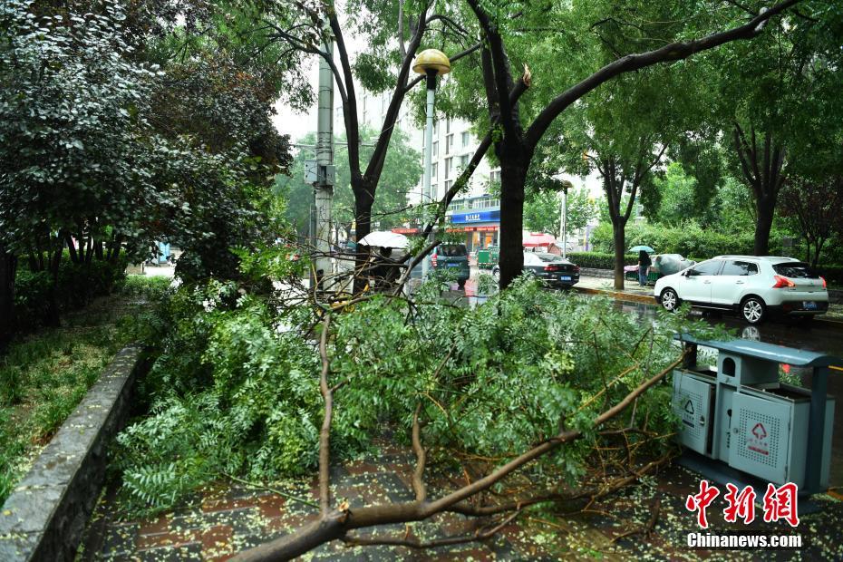 7月16日下午,河北石家莊街頭,樹(shù)枝被暴風(fēng)雨折斷。當(dāng)日,該省氣象臺(tái)發(fā)布暴雨藍(lán)色預(yù)警,承德、雄安新區(qū)、廊坊北部、石家莊中西部、邢臺(tái)西部等多地遭受暴雨襲擊。中新社記者翟羽佳 攝