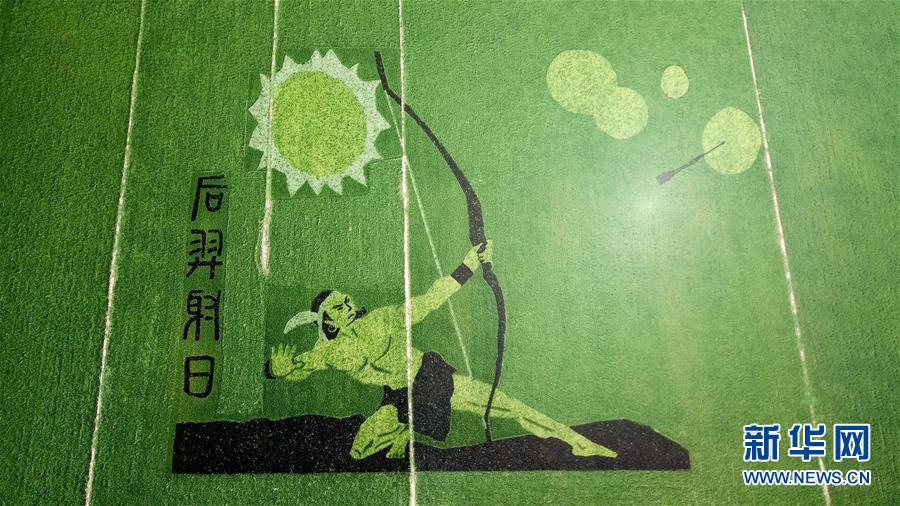 這是7月29日在安徽壽縣安豐塘水庫北堤拍攝的“稻田畫”(無人機(jī)拍攝)。 新華社記者 張端 攝