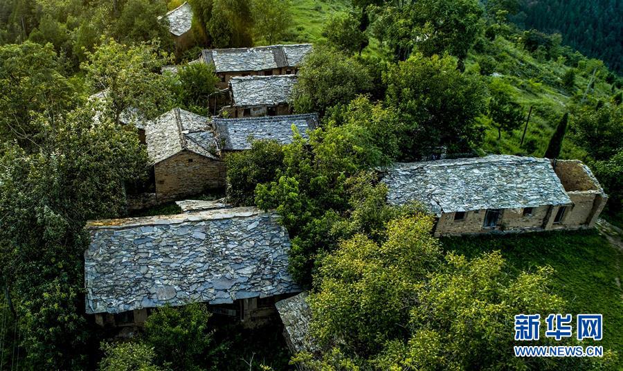 掩映在大山之中的石板房古村落,人去房空(8月7日無人機(jī)拍攝)。