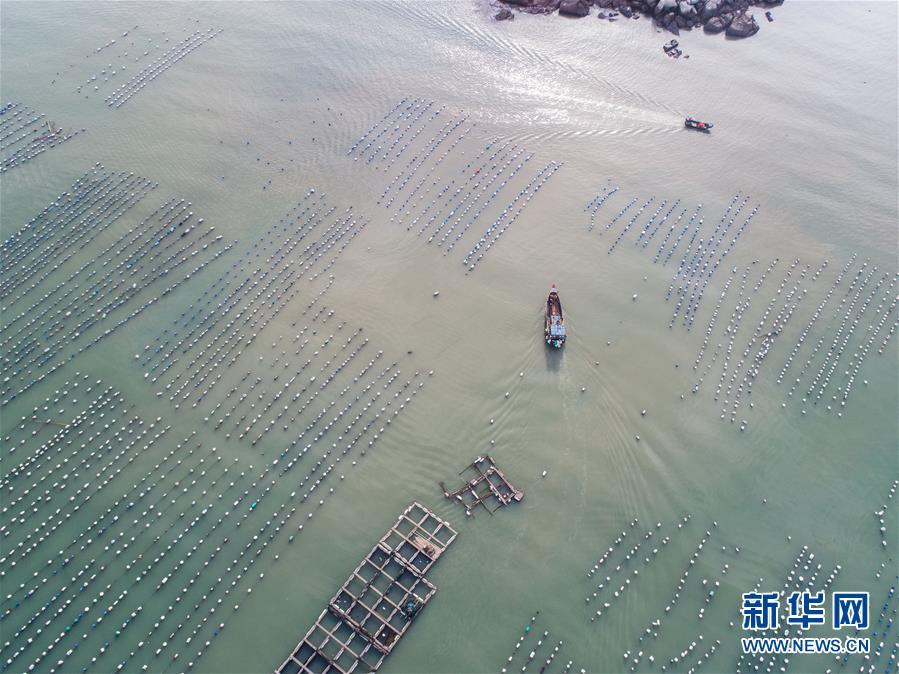 8月18日,南麂島海域的“海上牧場(chǎng)”養(yǎng)殖區(qū)內(nèi),漁民駕駛漁船進(jìn)行養(yǎng)殖作業(yè)。進(jìn)入8月,浙江省溫州市平陽(yáng)縣南麂鎮(zhèn)海域上大片的大黃魚、貽貝等特色海產(chǎn)品養(yǎng)殖區(qū)域迎來(lái)豐收季節(jié),養(yǎng)殖戶們駕駛漁船在養(yǎng)殖區(qū)海域進(jìn)行打撈收獲,在碧海藍(lán)天下構(gòu)成了一幅“海上牧場(chǎng)”的美麗豐收景象。近年來(lái),南麂鎮(zhèn)政府引導(dǎo)漁民養(yǎng)殖戶充分發(fā)揮“靠海吃?!钡馁Y源優(yōu)勢(shì),大力發(fā)展海洋養(yǎng)殖經(jīng)濟(jì)和海島旅游經(jīng)濟(jì),實(shí)現(xiàn)了南麂由“生態(tài)美”向“產(chǎn)業(yè)美”,“產(chǎn)業(yè)美”向“經(jīng)濟(jì)美”的轉(zhuǎn)變。同時(shí)該鎮(zhèn)堅(jiān)持以大黃魚、貽貝等為特色產(chǎn)業(yè)支撐,精準(zhǔn)發(fā)展高效海洋養(yǎng)殖業(yè),重點(diǎn)培養(yǎng)一批新型職業(yè)漁民,依靠專業(yè)技術(shù)支持,實(shí)現(xiàn)深海仿生養(yǎng)殖,讓好生態(tài)造就好品質(zhì),重點(diǎn)打造南麂養(yǎng)殖品牌,組建營(yíng)銷網(wǎng)絡(luò),拓展特色海產(chǎn)品市場(chǎng)。新華社記者 徐昱攝