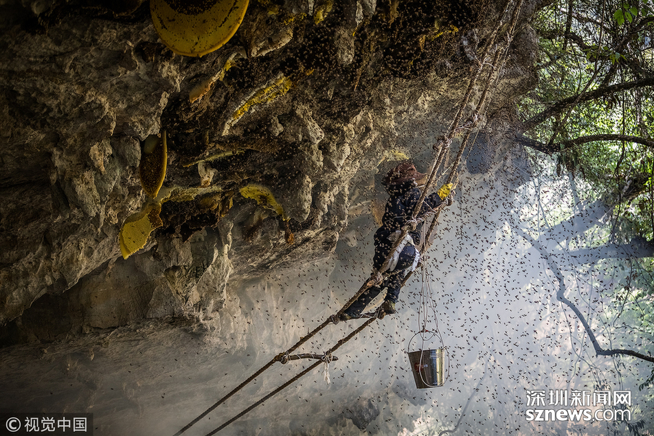 ?“最難采摘的崖蜜,是凹進(jìn)懸崖內(nèi)側(cè)3至5米的那種?!眱赡陙?lái),小蕊親自跟采了十幾趟蜜,最怕遇到凹陷的蜜源。