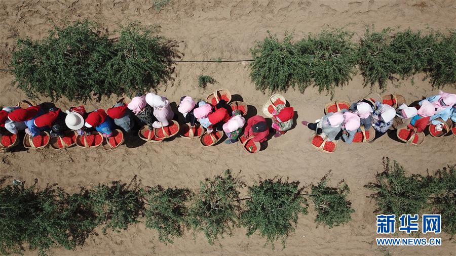紅寺堡生態(tài)移民區(qū)的移民在百瑞源枸杞種植基地采摘頭茬枸杞(5月30日無(wú)人機(jī)拍攝)。近日,在寧夏吳忠市紅寺堡區(qū)百瑞源枸杞種植基地,頭茬枸杞迎來(lái)采摘收獲季。今年頭茬枸杞采摘期比往年提前20天左右。據(jù)了解,該基地地處紅寺堡生態(tài)移民區(qū),占地3000畝,采摘季節(jié)每天有數(shù)百名當(dāng)?shù)匾泼裨谔镩g采摘?jiǎng)谧鳌P氯A社記者王鵬 攝