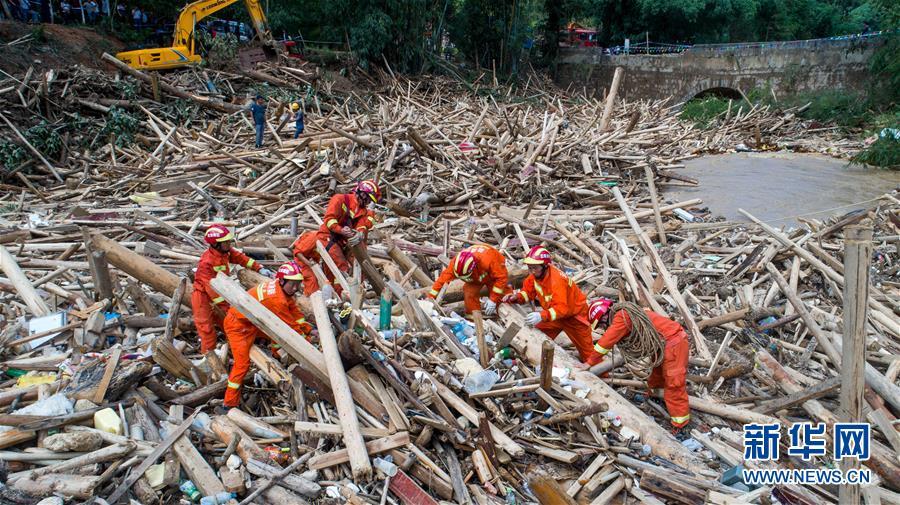 9月4日,當(dāng)?shù)厝罕娫诼槔跗驴h猛硐瑤族鄉(xiāng)壩子橋區(qū)域清理河道內(nèi)堆積的木材。當(dāng)日,云南麻栗坡山洪泥石流災(zāi)害救援工作繼續(xù)開展,救援人員在現(xiàn)場(chǎng)全力搜尋失蹤人員。新華社發(fā)方超 攝 圖片來源:新華網(wǎng)