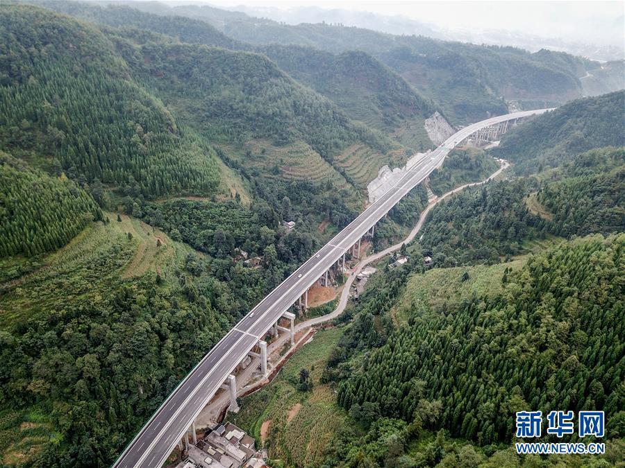 這是貴州織普高速織金東至普定路段(8月31日無人機(jī)拍攝)。 新華社記者 陶亮 攝
