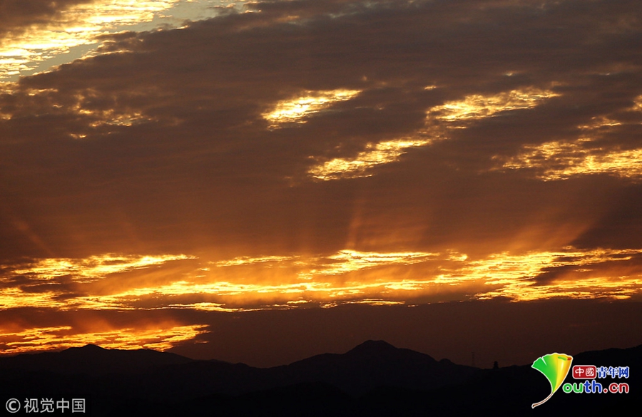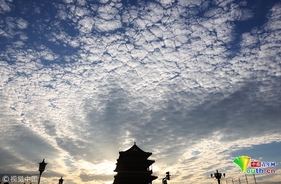 北京高積云點(diǎn)綴天空,和夕陽一起勾勒出一張絕美“天空?qǐng)D”。