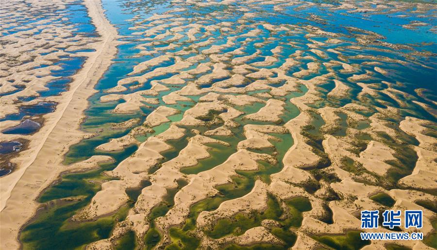 內(nèi)蒙古杭錦旗在黃河凌汛期向沙漠引水,讓水患變水利,沙地變濕地,庫(kù)布其沙漠北緣顯現(xiàn)出“水沙共存”美景(8月1日無(wú)人機(jī)拍攝)。 庫(kù)布其沙漠位于鄂爾多斯高原北部邊緣、黃河南岸,總面積1.86萬(wàn)平方公里,是我國(guó)第七大沙漠。這里曾經(jīng)寸草不生,風(fēng)沙肆虐。經(jīng)過(guò)幾代庫(kù)布其人的艱苦奮斗和科學(xué)創(chuàng)新,庫(kù)布其沙漠治理成效顯著,生態(tài)環(huán)境明顯改善,治理面積達(dá)6460平方公里,綠化面積3200多平方公里。 新華社記者邢廣利攝