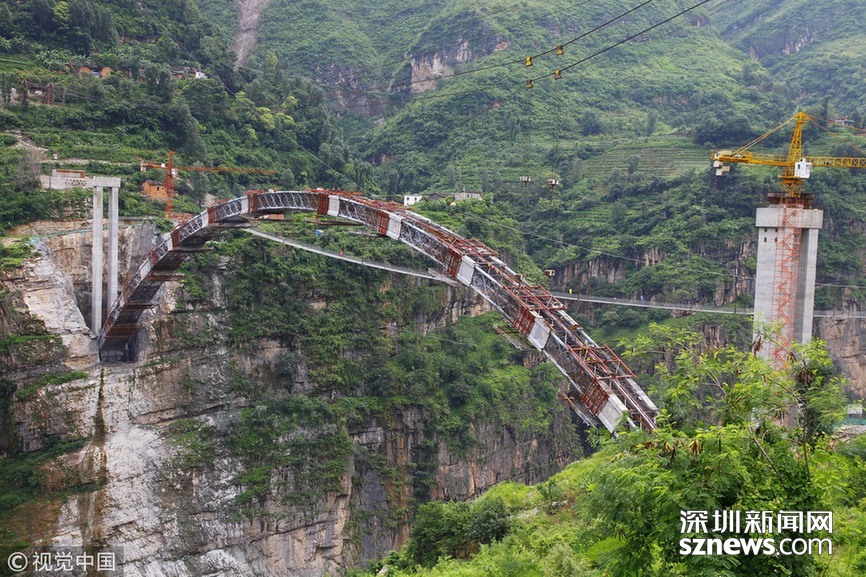 當(dāng)日,橫跨在貴州省沿河縣淇灘鎮(zhèn)烏江上方的沙坨特大橋主拱圈成功合龍。由貴州路橋集團(tuán)承建的沙坨特大橋全長(zhǎng)626.8米,鋼筋混凝土箱型拱跨徑達(dá)240米。