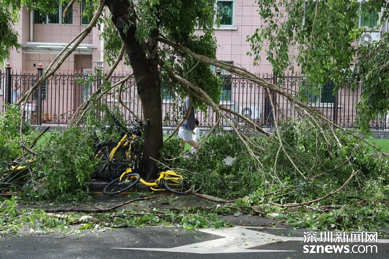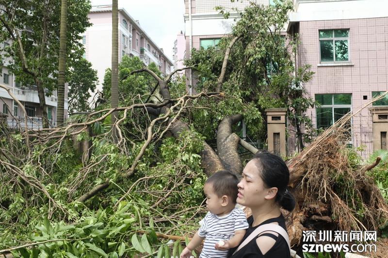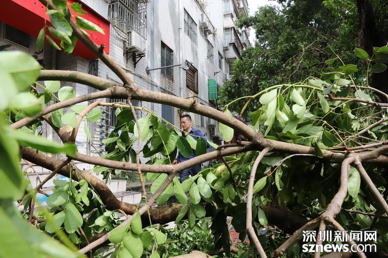 在蓮花北村靠近北環(huán)中學(xué)的小路,記者注意到拉起警戒線,有多株樹木經(jīng)不住大風(fēng)考驗,已投降就地倒下。