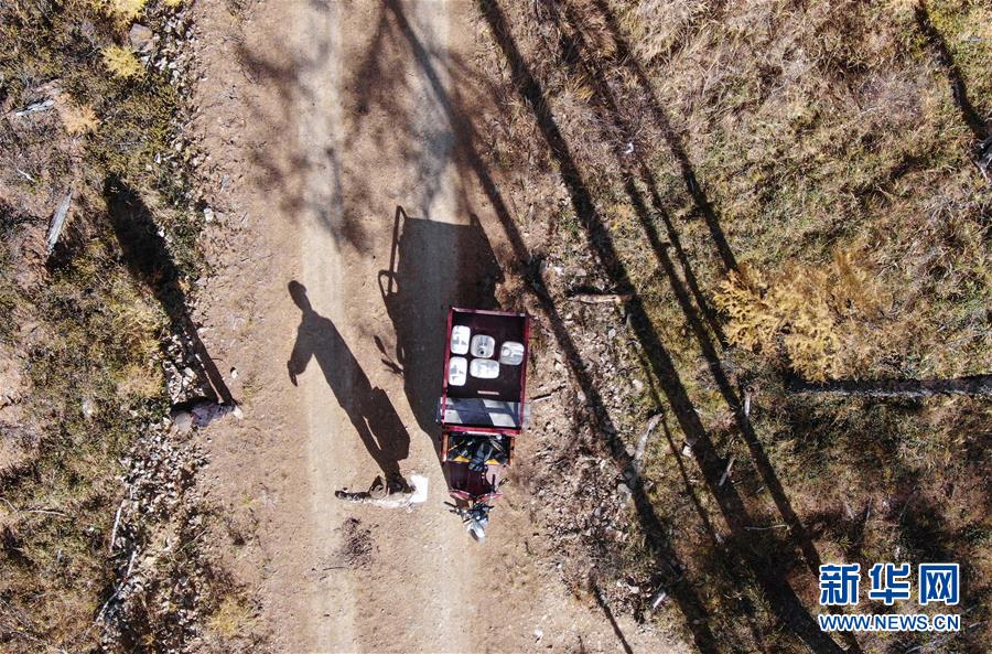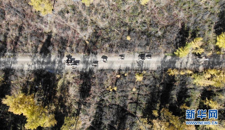 9月18日,在內(nèi)蒙古大興安嶺根河林業(yè)局約安里林場,林場職工為馴鹿養(yǎng)殖基地運送給養(yǎng)。新華社記者于洋攝