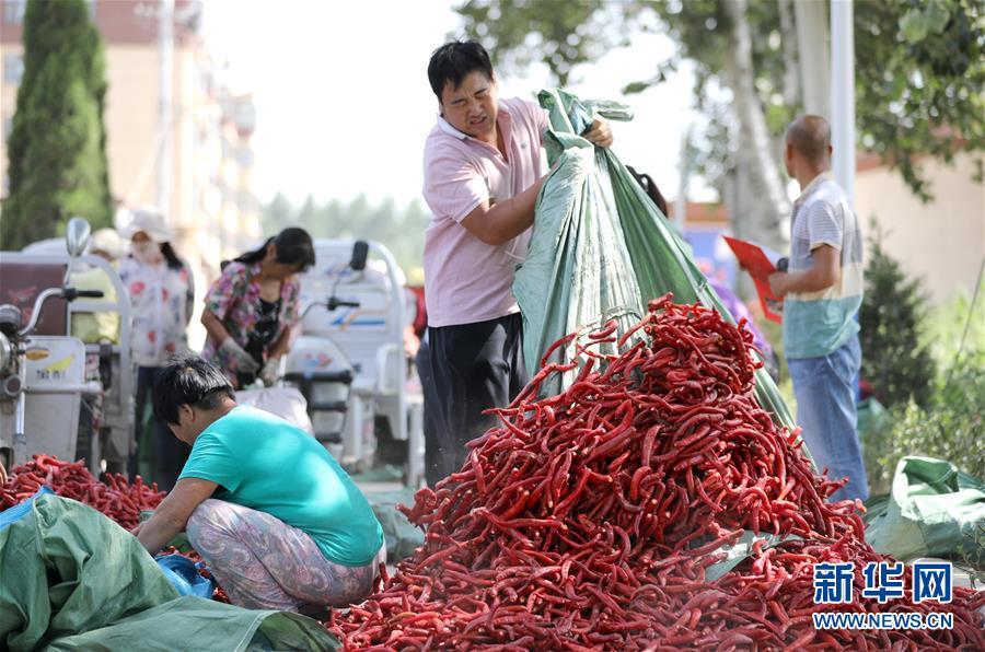 9月16日,阜城縣王集鄉(xiāng)南張莊村農民在搬運采摘的辣椒。近年來,河北省阜城縣王集鄉(xiāng)在推進產業(yè)富民過程中,積極引導農民調整農業(yè)產業(yè)結構,按照品種特色化、種植規(guī)?;?、產銷一體化的“公司+基地+農戶”的經營模式,鼓勵農民發(fā)展特色辣椒種植,推行“訂單種植”模式,開辟出了一條農民創(chuàng)收新路徑。目前,阜城縣王集鄉(xiāng)辣椒種植面積3100余畝,每畝年收益2500元以上,帶動當?shù)剞r民實現(xiàn)增收。新華社記者朱旭東攝