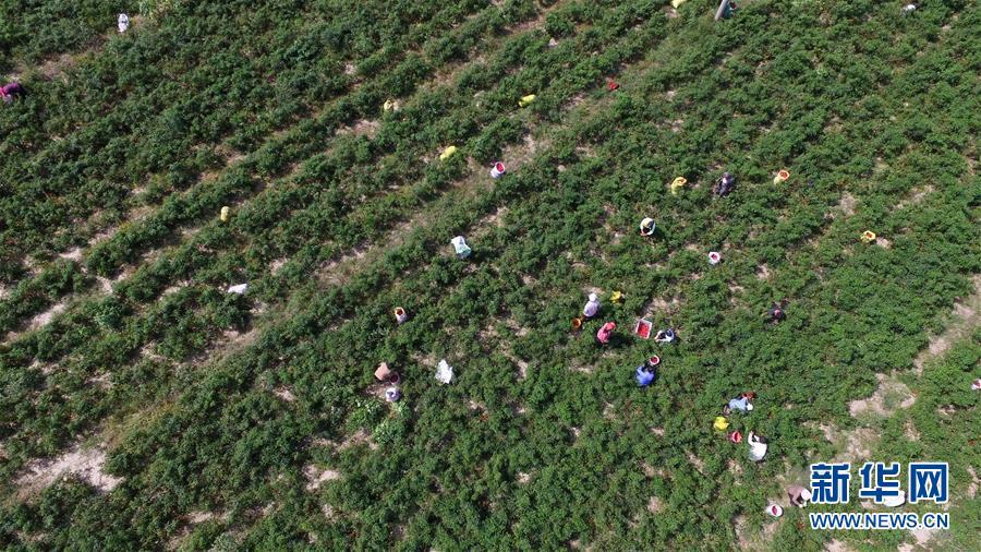 9月16日,阜城縣王集鄉(xiāng)南張莊村農民在采摘辣椒(無人機拍攝)。近年來,河北省阜城縣王集鄉(xiāng)在推進產業(yè)富民過程中,積極引導農民調整農業(yè)產業(yè)結構,按照品種特色化、種植規(guī)?;a銷一體化的“公司+基地+農戶”的經營模式,鼓勵農民發(fā)展特色辣椒種植,推行“訂單種植”模式,開辟出了一條農民創(chuàng)收新路徑。目前,阜城縣王集鄉(xiāng)辣椒種植面積3100余畝,每畝年收益2500元以上,帶動當?shù)剞r民實現(xiàn)增收。新華社記者朱旭東攝