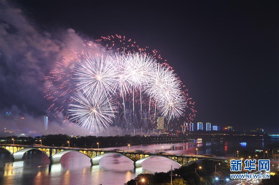 這是9月19日拍攝的長沙湘江橘子洲焰火晚會現(xiàn)場。 新華社記者 龍弘濤 攝