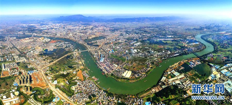這是西江黃金水道上的重鎮(zhèn)貴港市全景(3月9日攝,無人機航拍)。