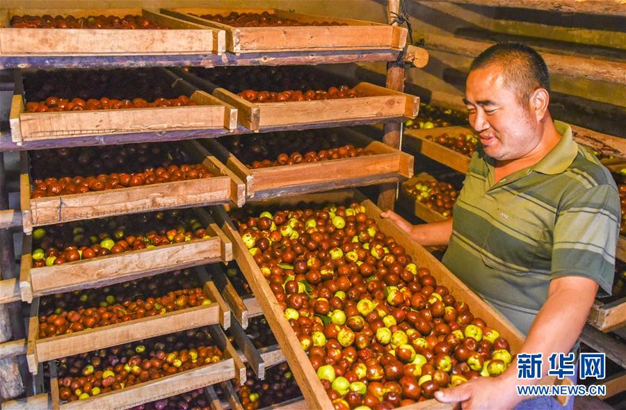 9月22日,河北省棗強縣棗強鎮(zhèn)孟家莊村的棗農(nóng)將紅棗放進蒸房。 近日,河北省棗強縣的2000多畝棗園迎來收獲季,棗農(nóng)們搶抓農(nóng)時,采摘、篩選、晾曬紅棗,樂享秋收的快樂。 新華社記者李曉果攝