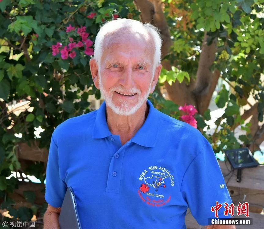 當(dāng)?shù)貢r間2018年9月1日,塞浦路斯,95歲的英國潛水員雷·伍利(Ray Woolley)以44分鐘下潛40.5米的成績打破了自己94歲達成的記錄(41分鐘下潛38.1米),二度刷新了世界上年齡最大的男性潛水員最好成績。在此次下潛中,這位二戰(zhàn)退伍老兵對距塞浦路斯南部城鎮(zhèn)拉納卡約2公里處的海域進行了探索,1980年一艘名為“芝諾比亞號”(Zenobia)的貨船在這里進行首次航行時沉沒。圖片來源:視覺中國