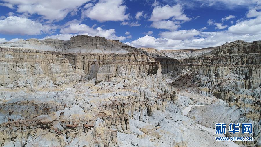 西藏阿里地區(qū)札達(dá)縣霞義溝土林一角(9月11日無(wú)人機(jī)拍攝)。