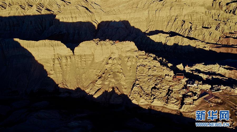從空中鳥瞰西藏阿里地區(qū)東嘎遺址(9月11日無(wú)人機(jī)拍攝)。 西藏阿里地區(qū)素有“世界屋脊的屋脊”之稱,平均海拔4000米以上。這里河流縱橫、湖泊密布、土林林立。從空中鳥瞰阿里大地,呈現(xiàn)出一幅幅獨(dú)特的美景。 新華社記者 普布扎西 攝