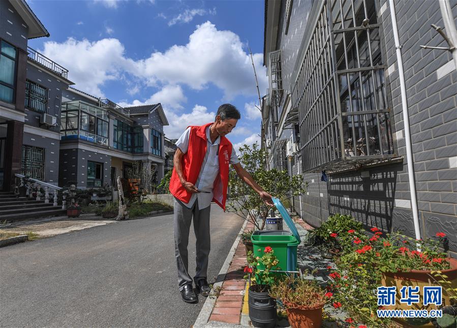 9月27日,小浦鎮(zhèn)合溪村垃圾分類督察員黃秋華在進行垃圾分類巡查,并用APP進行登記。從9月初開始,浙江省長興縣小浦鎮(zhèn)推廣使用手機垃圾分類智能管理平臺。通過這款A(yù)PP可以進行村民垃圾分類情況打分、清運員每日簽到、監(jiān)督員巡查等,并能即時生成農(nóng)戶垃圾分類“成績單”,所有農(nóng)戶均可通過APP查詢垃圾分類排行榜,既方便又環(huán)保。新華社記者 徐昱 攝