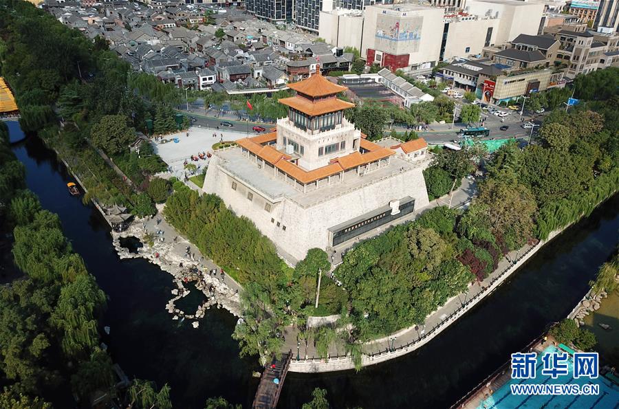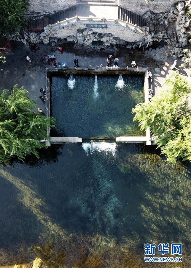 9月30日,游客在免費開放的濟南市黑虎泉游覽(無人機拍攝)。近年來,山東積極推進國有景區(qū)免費開放工作,截至目前,山東實現免費開放的國有景區(qū)已達286處。新華社記者徐速繪攝