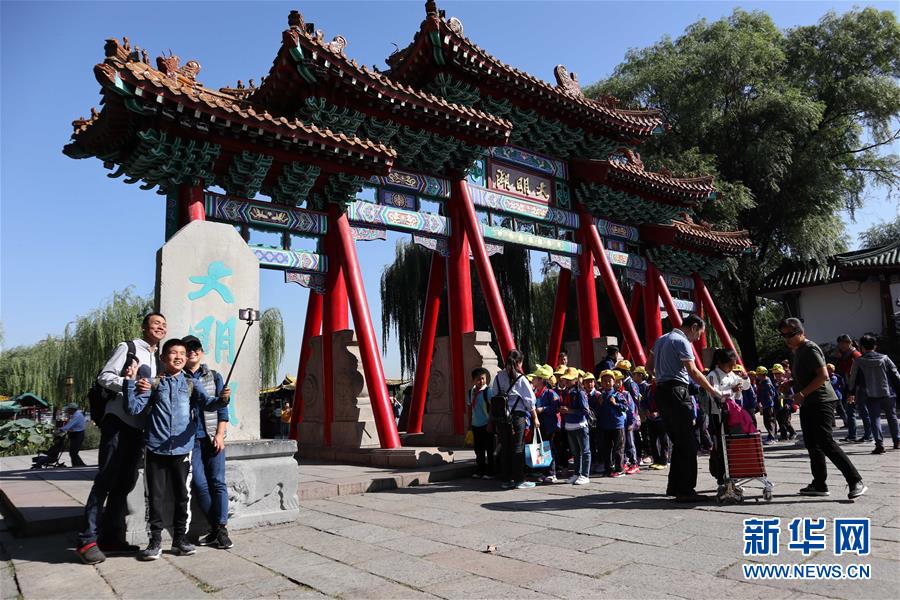 9月30日,游客在免費開放的濟南市大明湖景區(qū)游覽。近年來,山東積極推進國有景區(qū)免費開放工作,截至目前,山東實現免費開放的國有景區(qū)已達286處。新華社記者徐速繪攝