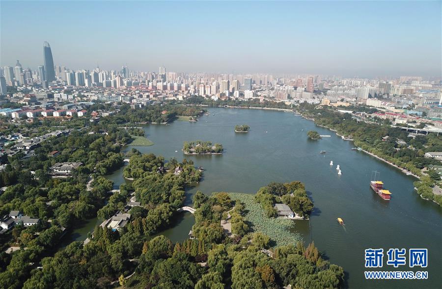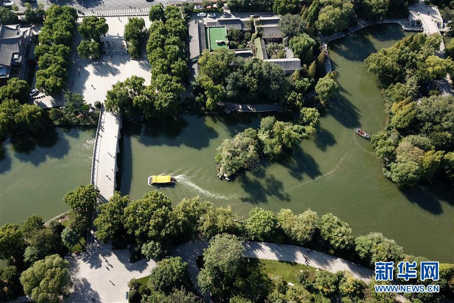 這是免費開放的濟南市大明湖景區(qū)(9月30日無人機拍攝)。近年來,山東積極推進國有景區(qū)免費開放工作,截至目前,山東實現免費開放的國有景區(qū)已達286處。新華社記者徐速繪攝