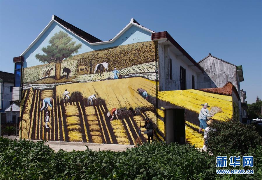 這是10月1日拍攝的上海金山區(qū)呂巷鎮(zhèn)和平村民居壁畫(huà)。