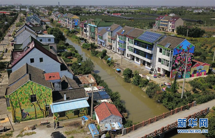 這是10月1日拍攝的上海金山區(qū)呂巷鎮(zhèn)和平村民居壁畫。