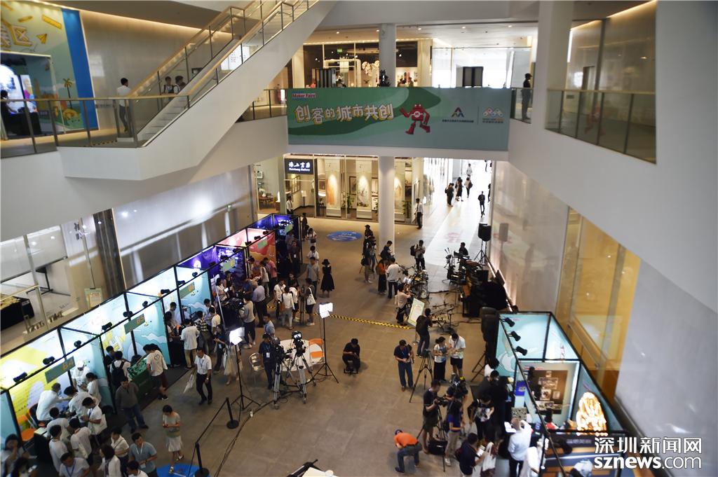 深圳雙創(chuàng)周主會場1樓內部,創(chuàng)意站位前參觀人數(shù)眾多,非常熱鬧