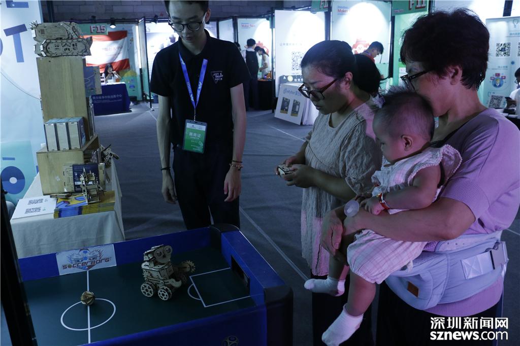 F16玩創(chuàng)工房展位前,市民體驗操作機器人
