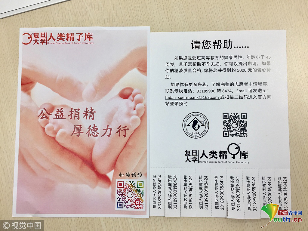 2018年9月20日,上海,實(shí)拍復(fù)旦大學(xué)人類精子庫(kù)。復(fù)旦大學(xué)人類精子庫(kù)宣傳單。圖片作者:陳斯斯