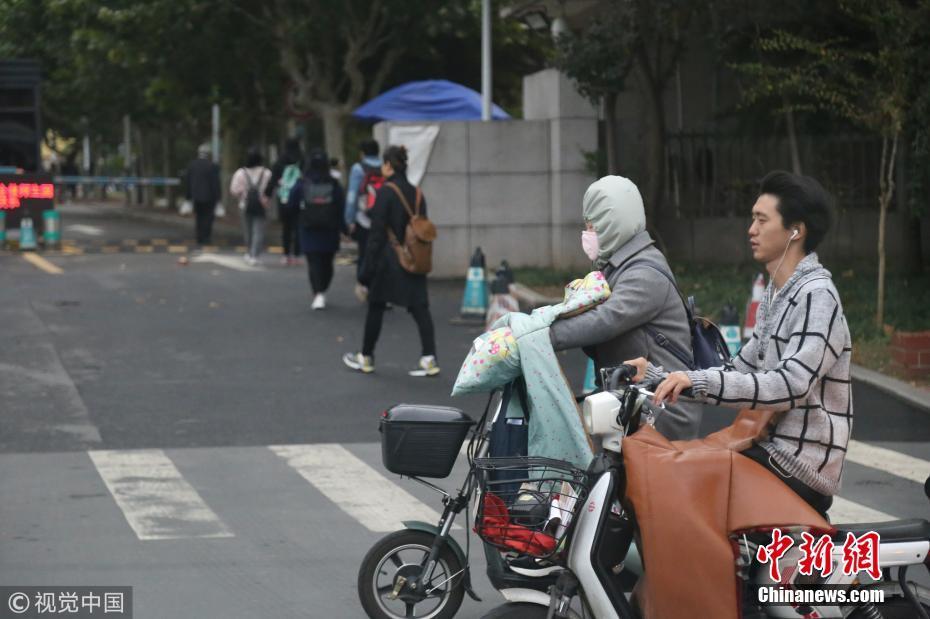 2018年10月9日,山東濟(jì)南,昨日一場秋雨過后開始降溫,今天清晨最低氣溫只有6度,馬路上不少上班族穿上羽絨服騎車趕上班路。 圖片來源:視覺中國