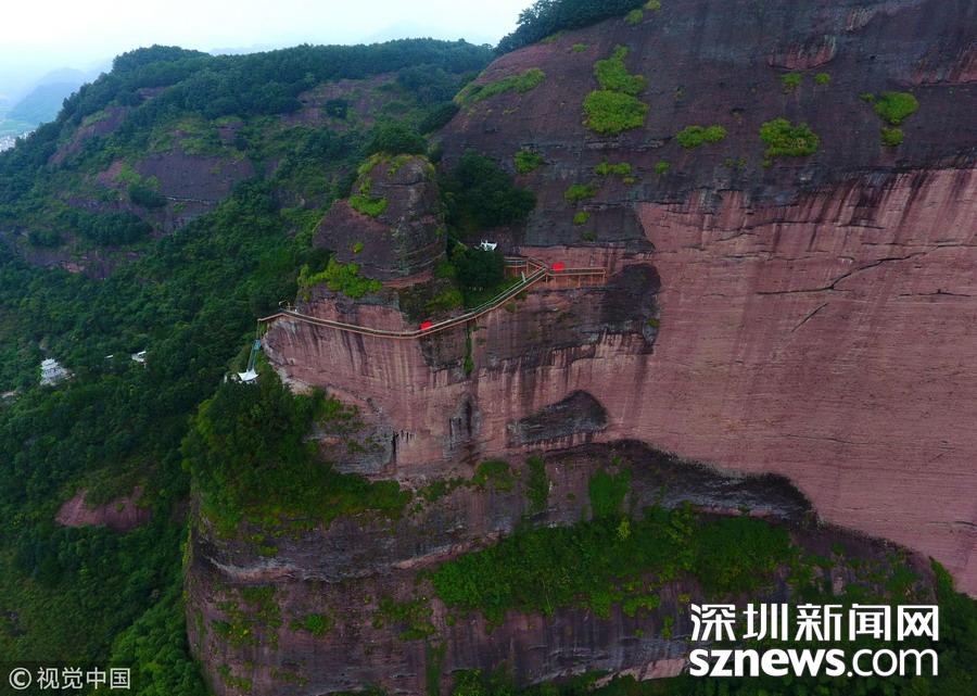 深圳新聞網(wǎng)訊  武義縣大紅巖景區(qū)在227500平方懸崖上建造的玻璃桟道,通過(guò)有關(guān)部驗(yàn)收,10月1日將開放接待游客。武義縣大紅巖是國(guó)家級(jí)風(fēng)景名勝區(qū),今年景區(qū)利用長(zhǎng)650米、高350米的懸崖峭壁建造玻璃桟道,為景區(qū)又增添了一道壯觀的景點(diǎn)。